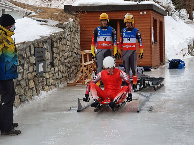 Am Donnerstag wagte ich im 5. Lauf von ganz oben zu starten, obschon es in meiner Altersklasse noch gar nicht erforderlich ist. Ich war mutig und habe es aber trotzdem gemacht, um auch noch zusätzliche Erfahrungen zu sammeln. Ich muss gestehen, dass es sich richtig mulmig anfühlte, mit 20km/h schneller die Bahn herunterzurodeln. Alle Deutschen Trainer und Athleten unterstützten mich total und als ich ohne grobe Fehler im Ziel ankam, erhielt ich auch großen Applaus von ihnen, was mich sehr freute.