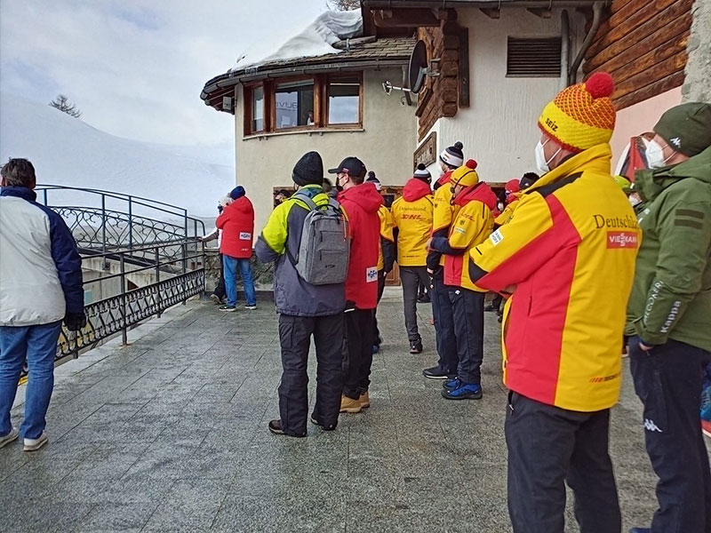 Am Montag, 1. März, fing sie endlich an: die Trainingswoche in St. Moritz zusammen mit dem Deutschen Nationalteam sowie dem italienischen Team. Seit Wochen habe ich mich mental darauf vorbereitet und hatte eine grosse Vorfreude! Früh um sieben Uhr fing die ganze Action an. Ich hatte meinen ersten Trainingslauf und spürte, wie das ganze Adrenalin durch mich hindurchschoss. Da ich wegen dem frühen Aufstehen sehr müde war, verspürte ich dank dem Adrenalin keinerlei Müdigkeit mehr am Start. Ich machte meine ersten beiden Trainingsläufe auf der Bobbahn von St. Moritz und beide verliefen zum Glück unfallfrei. Anschliessend gab es eine einstündige Pause, denn die Gästebobs hatten auch ihren Auftritt. Bereits um 9:20 Uhr fing die zweite Trainingseinheit mit zwei weiteren Trainingsläufen an. Wie auch die erste Trainingseinheit verlief auch diese gut. Nach jedem Lauf durfte ich an den deutschen Funk gehen und mir Tipps und Anweisungen von Deutschen Trainern anhören; diese waren immer sehr hilfreich und ich versuchte sie auch immer sofort umzusetzen.