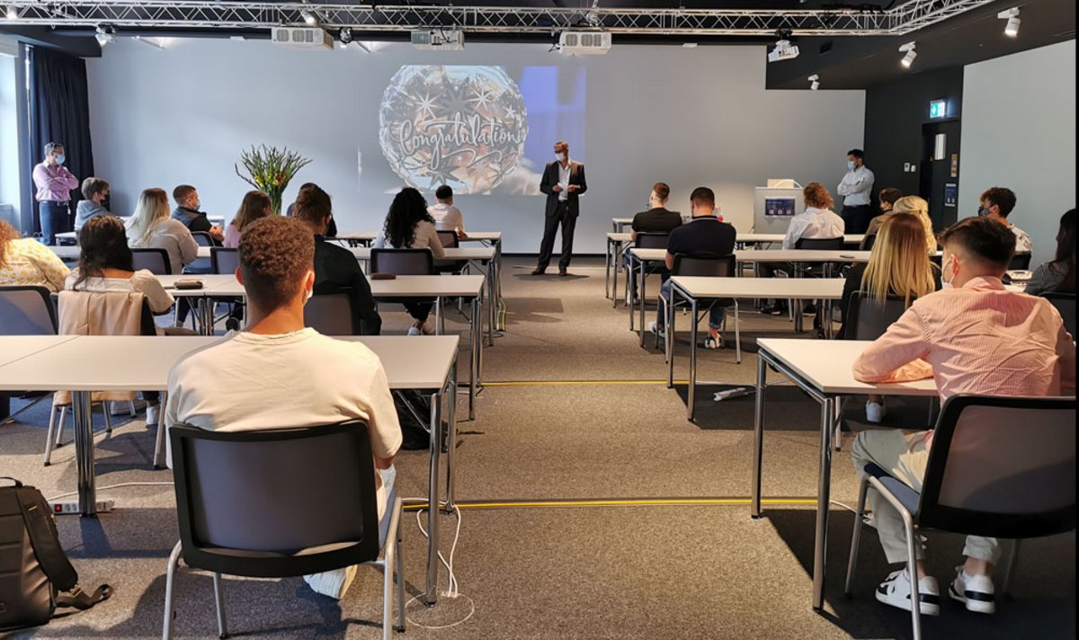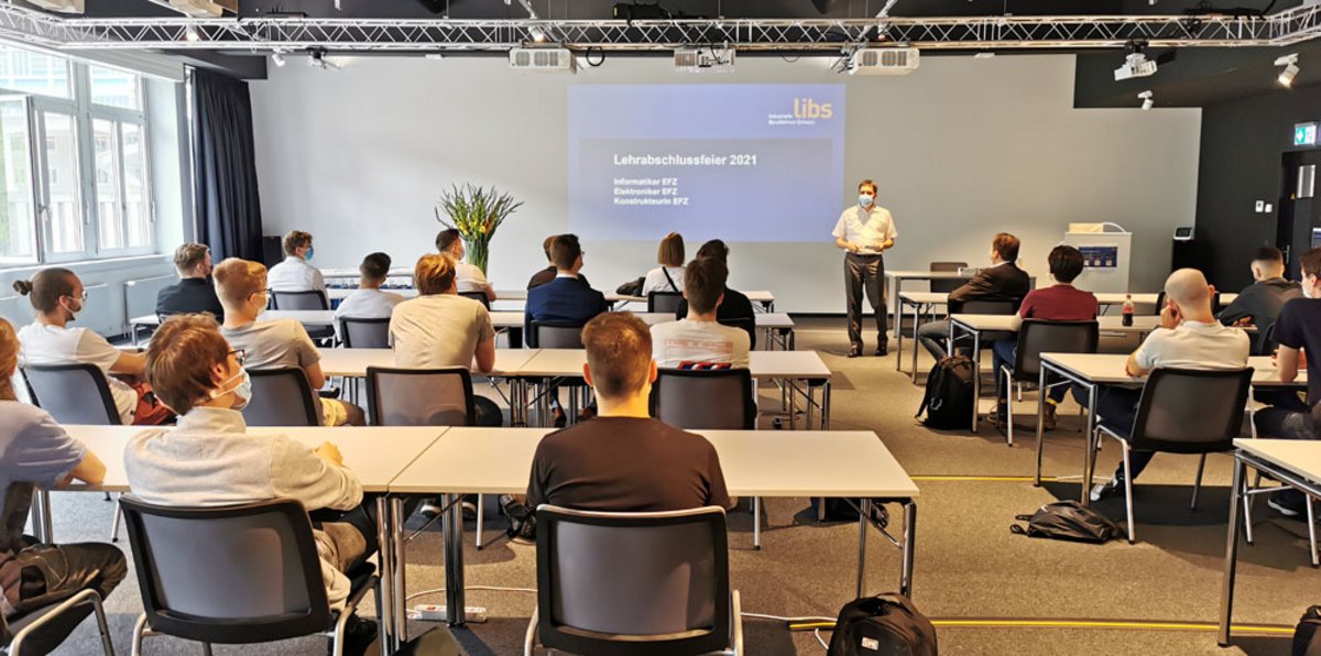 Auf Grund der aktuellen Corona-Regelungen musste, wie bereits letztes Jahr, auf eine grosse gemeinsame Lehrabschlussfeier verzichtet werden. Stattdessen wurden in vier verschiedenen kleineren Veranstaltungen die Lehrabgängerinnen und Lehrabgänger gefeiert und von ihren Ausbildungsverantwortlichen verabschiedet. Bei einem anschliessenden Apéro wurden intensive Gespräche geführt, gemachte Erfahrungen ausgetauscht und weitere, vielleicht auch gemeinsame Projekte besprochen.